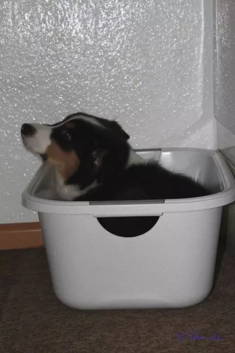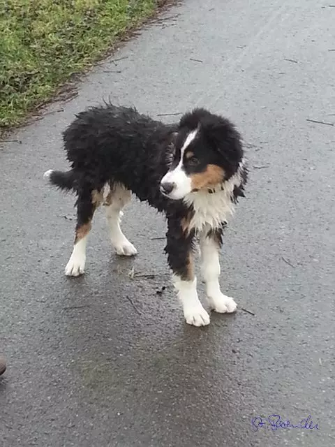 In dieser Woche habe ich mein Seepferdchen gemacht. Ich war mit Frauchen und Verena an der Ruhr spazieren und da bin ich dann mal einfach so reingesprungen und hab ein bisschen geplanscht. Anschließend sah ich dann aus, wie ein begossener Pudel. Ja und sonst gibt es wenig Neues zu berichten. Noch passe ich in den Wäschekorb, beim Messen am Sonntag war ich 44 cm hoch und 13 kg schwer. Ich schlafe jetzt immer von 23 Uhr bis 6 Uhr, am Wochenende auch schon mal etwas länger. Pipi und Häufchen mache ich immer nur draußen. Meine Leute sind ganz aus dem Häuschen und ganz aufgeregt. Irgendwie kommt wohl jemand zu Besuch, Weihnachten heißt der wohl - keine Ahnung warum die komische Sachen machen. Einen Tannenbaum haben sie auf den Balkon gestellt und im Wohnzimmer steht Grünzeug mit vier Kerzen. Anzünden tun sie nur drei - blöd was? Ich war mit Frauchen und Herrchen einkaufen. Da waren vielleicht viele Leute - puh und warm war es da. Herrchen hat immer andere Jacken angezogen und irgendwann hat er eine mitgenommen. Dann sind wir endlich nach Hause gefahren. Frauchen hatte auch ein paar Tüten mit Klamotten....