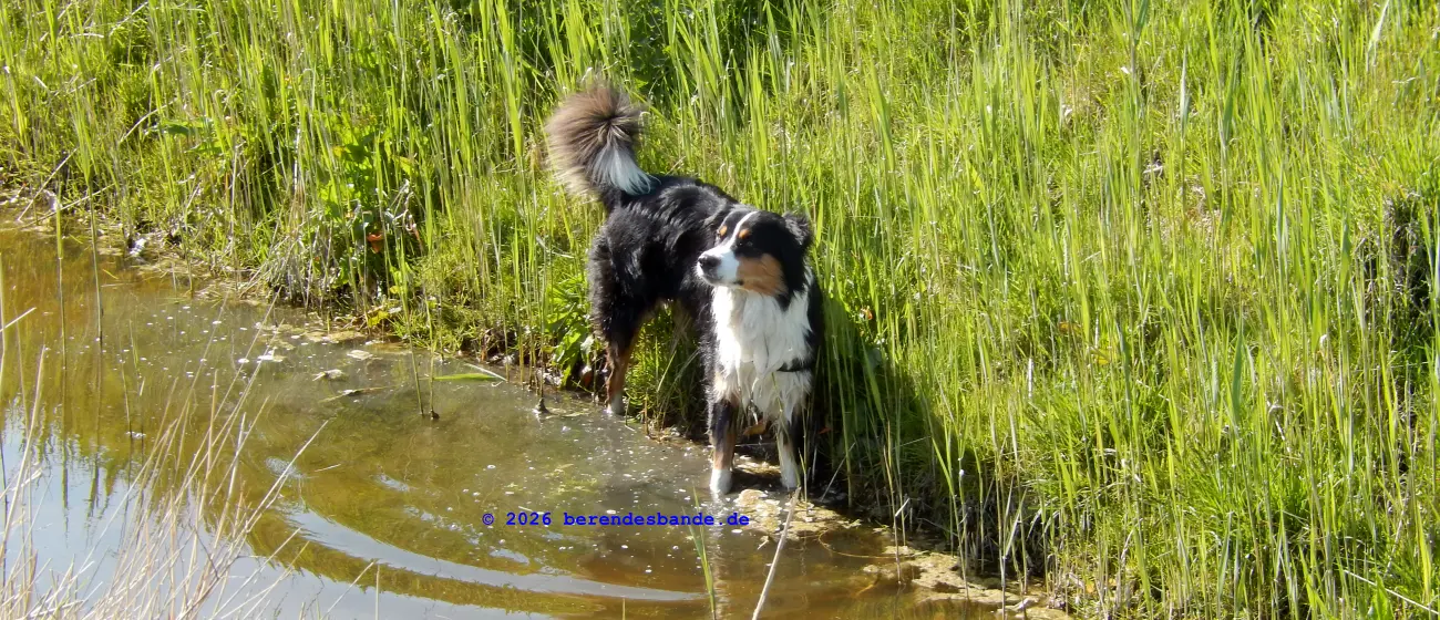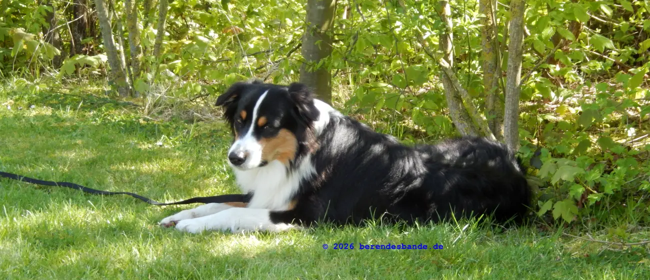 Wir waren wieder am Meer, da waren wir schon öfter, ich meine an dem Meer, wo wir zu Ostern waren. Wir haben unseren Wohnwagen mitgenommen und auf eine schöne Wiese gestellt. Ich konnte den ganzen Tag draußen liegen und gucken – das war echt toll. Ich hab auch nicht gebellt, wenn die Nachbarn zu nah an unser Zelt gekommen sind, nur wenn der Terrier auf der anderen Seite des Weges gebellt hat, dann hab ich mitgemacht – bis Frauchen oder Herrchen geschimpft haben – aber ich kann mir ja nicht alles gefallen lassen.