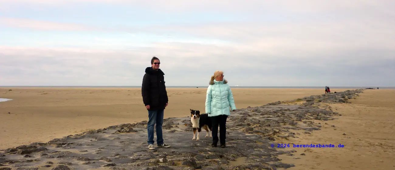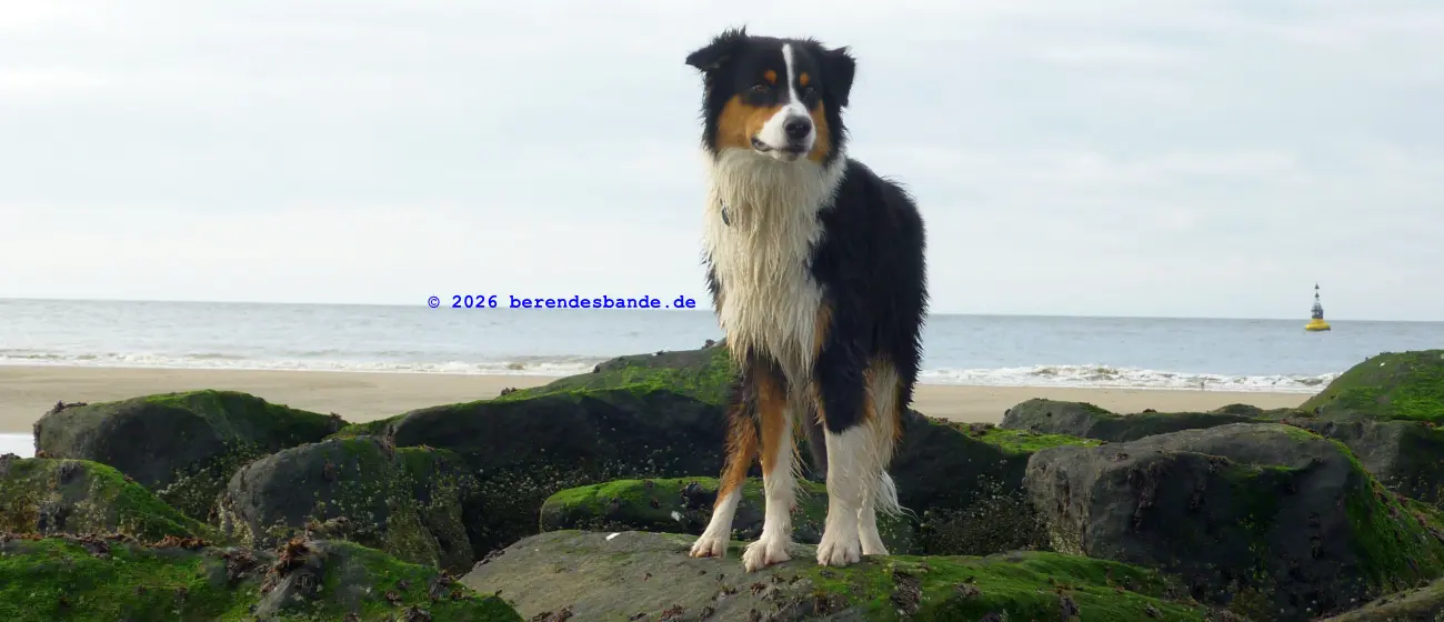 Am Strand gab es jede Menge Vögel, die wollte ich mir mal ganz genau angucken. Aber die waren alle doof. Immer wenn ich angelaufen kam, sind die weg geflogen - alle. Nicht einer wollte mit mir spielen. Aber Benjamin und Herrchen haben dann mit mir gespielt. Die haben alte Hölzer ins Wasser geworfen und ich hab sie wieder geholt. Schließlich lerne ich ja apportieren.