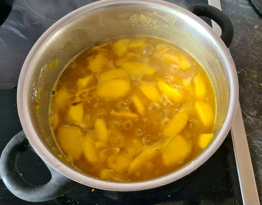 Den Reis nach Packungsangabe in Salzwasser kochen.