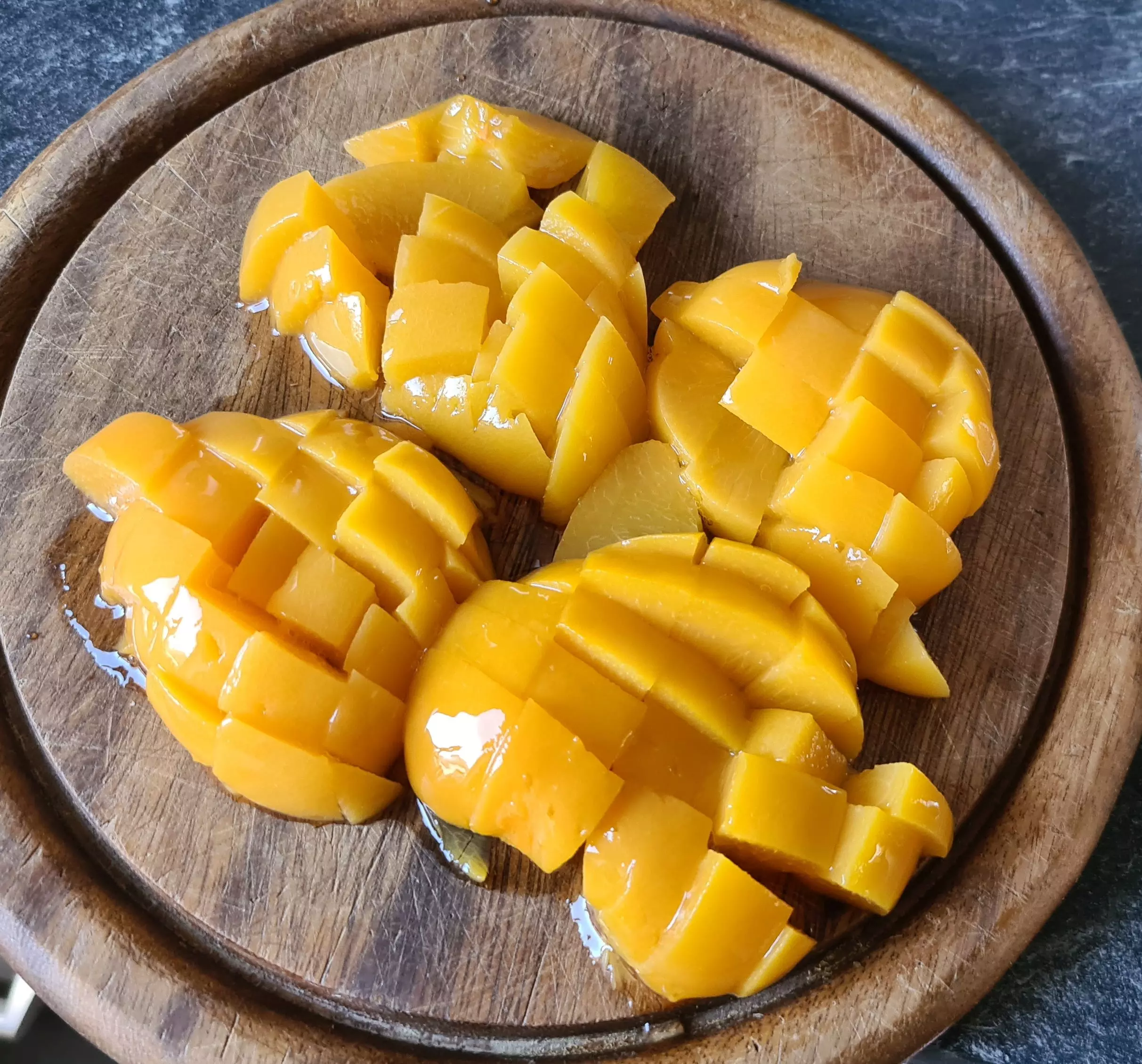 Etwas Öl in einer Pfanne erhitzen. Das Fleisch mit Salz und Paprikapulver würzen und von allen Seiten scharf anbraten. Dann die Hitze reduzieren und durchgaren. Das Fleisch in mundgerechte Stücke schneiden.
