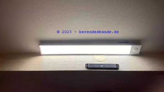 Die Schrankleuchte wurde gegen eine leistungsfähigere, wiederaufladbare Lampe ersetzt. Diese ist mit Magnetpads befestigt, so dass das Aufladen kein Problem ist. Sie hat ebenfalls einen Bewegungsmelder, so dass da Licht beim Öffnen der Schranktür automatisch eingeschaltet wird. Ein weiterer Vorteil ist ein Ein-Ausschalter, der der Challengerleuchte fehlte. Ich habe diese Leuchte im Doppelpack bei Amazon für etwa 20 € gekauft. Die zweite Leuchte habe ich in der Garage, rechts neben der Luke angebracht. Nun tappt man nicht mehr im Dunkeln, wenn man von der Luke her in die Garage greift.